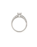 Feel free to come in the shop to choose your own diamond and set it in this classic, elegant setting. It takes 4 to 6 weeks for our team of goldsmiths to hand-forged an engagement ring.