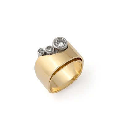 This ring was entirely hand-forged by our team of goldsmiths in our own workshop in Vancouver. No cast nor mould were used.